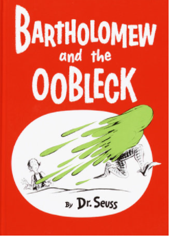 Join Bartholomew Cubbins in Dr. Seuss’s Caldecott Honor–winning picture book about a king’s magical mishap! Bored with rain, sunshine, fog, and snow, King Derwin of Didd summons his royal magicians to create something new and exciting to fall from the sky. What he gets is a storm of sticky green goo called Oobleck—which soon wreaks havock all over his kingdom! But with the assistance of the wise page boy Bartholomew, the king (along with young readers) learns that the simplest words can sometimes solve the stickiest problems.