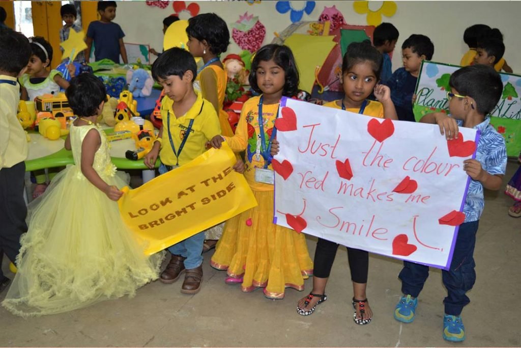 Today our #HappyTots (Pre KG to Sr KG) of HIS, Guindy celebrated the “Colour Day” in a spectacular manner exhibiting different colour objects. Children were seated in a formation of Sun, tree, flower and river holding placards, to stress the importance of nature. Look at their colourful smiles..