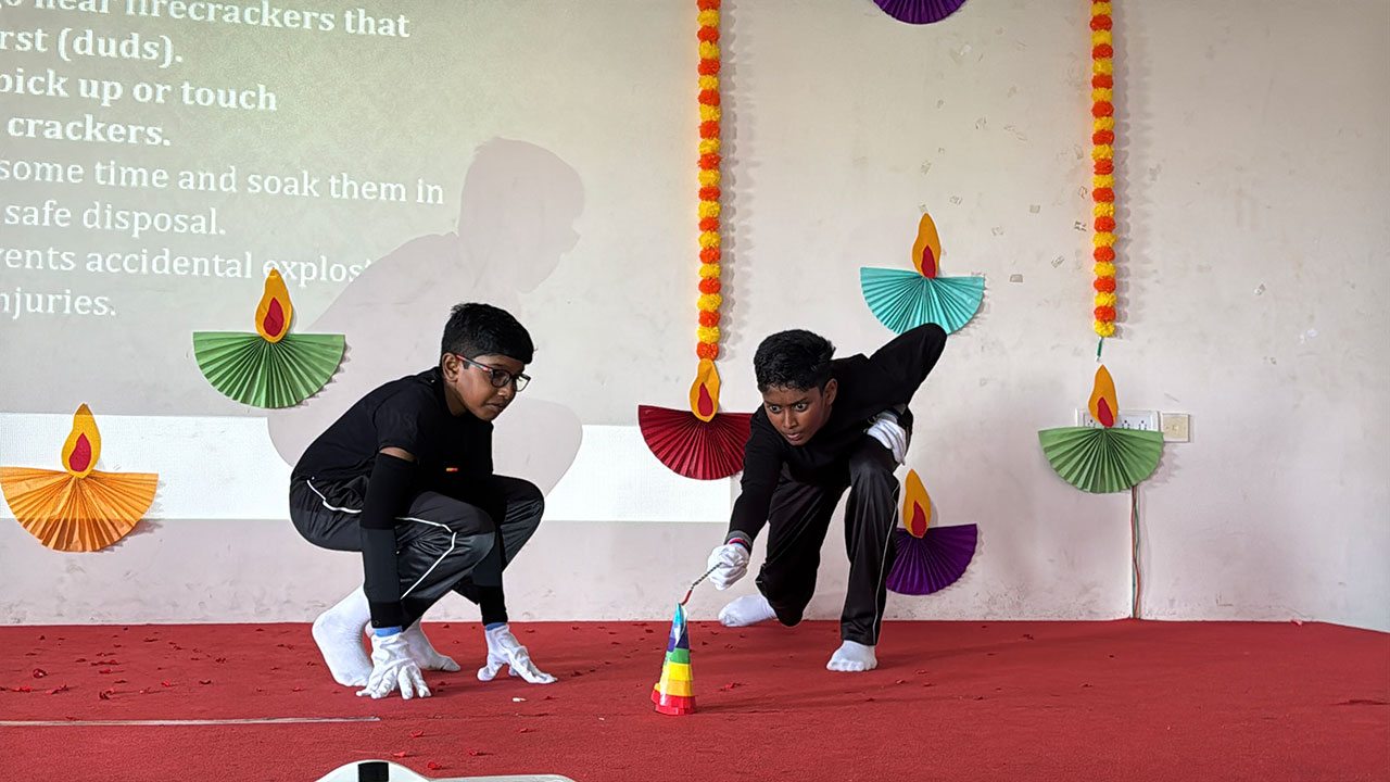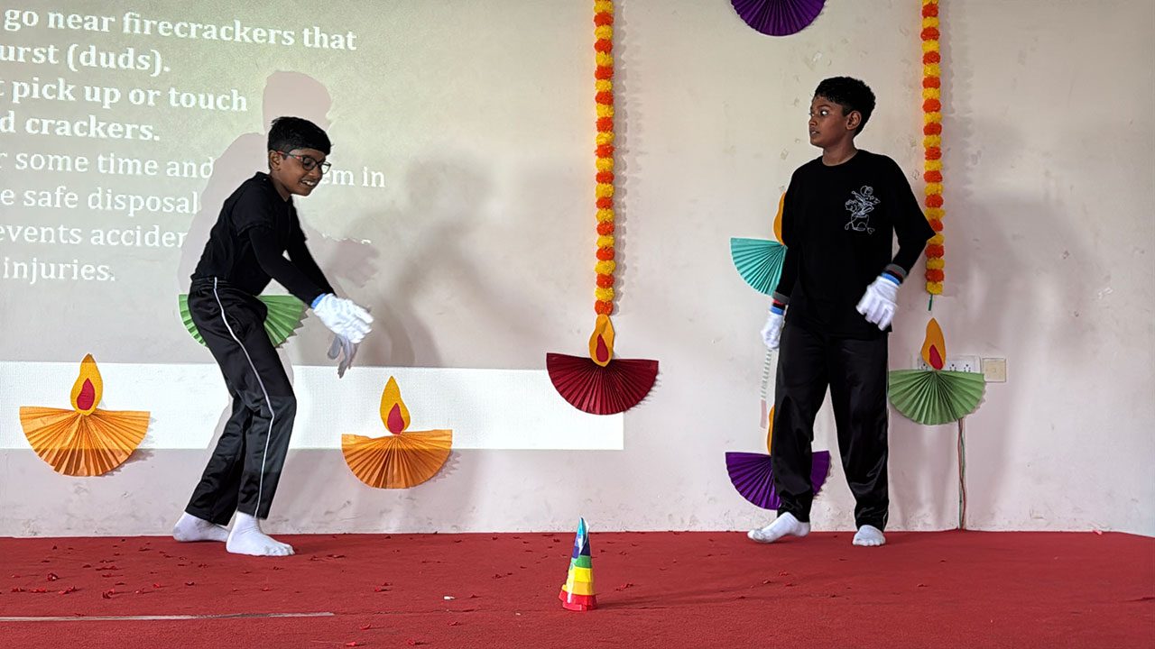 The middle school Students performed a thought-provoking mime, emphasizing the importance of celebrating a safe and eco-friendly Diwali.