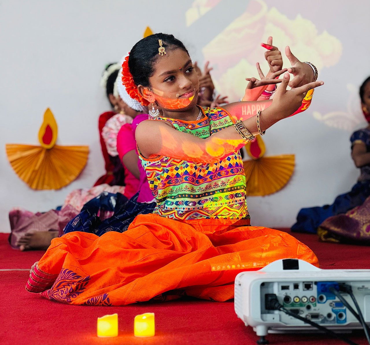 A skit titled “From Darkness to Light” beautifully conveyed the deeper meaning of Diwali — the triumph of good over evil and hope over despair. The primary school Students then showcased their talent through a lively group dance, filling the stage with color and rhythm.