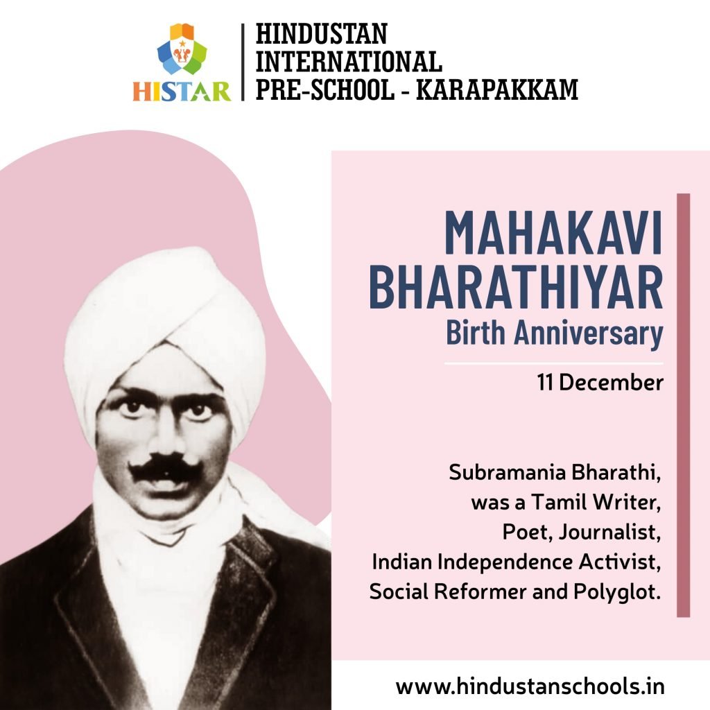 Subramani Bharathi, was a Tamil Writer, Poet, Journalist, Indian Independence Activist, Social Reformer and Polyglot.