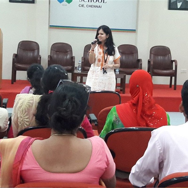 Ms.Harini from Madras Dyslexia Association took a session on identifying children with learning disorders and the remedial measures to be taken. It was an elaborate and insightful session wherein the teachers of the three campuses were present.
